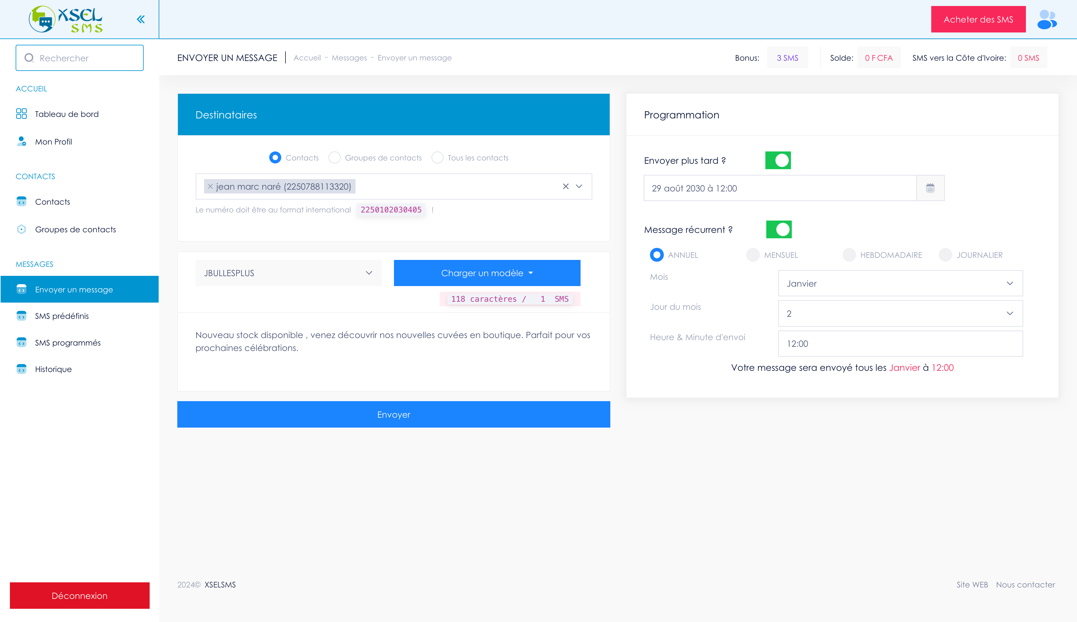 Vous êtes enfin prêt, vous pouvez désormais envoyer autant de messages que vous le souhaitez.